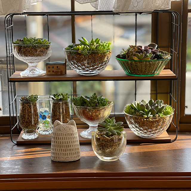 多肉植物 ディスプレイ棚のおしゃれなアレンジ・飾り方のインテリア実例RoomClip ルームクリップ。