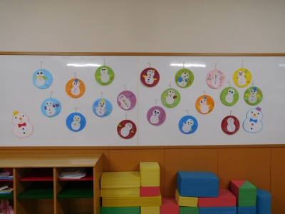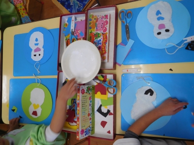 年中組 ホワイトボード装飾の製作へいわようちえんブログ。