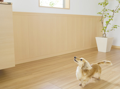 個性的な空間を演出する、銘木柄の化粧シートフロア - 三重県住宅生協。