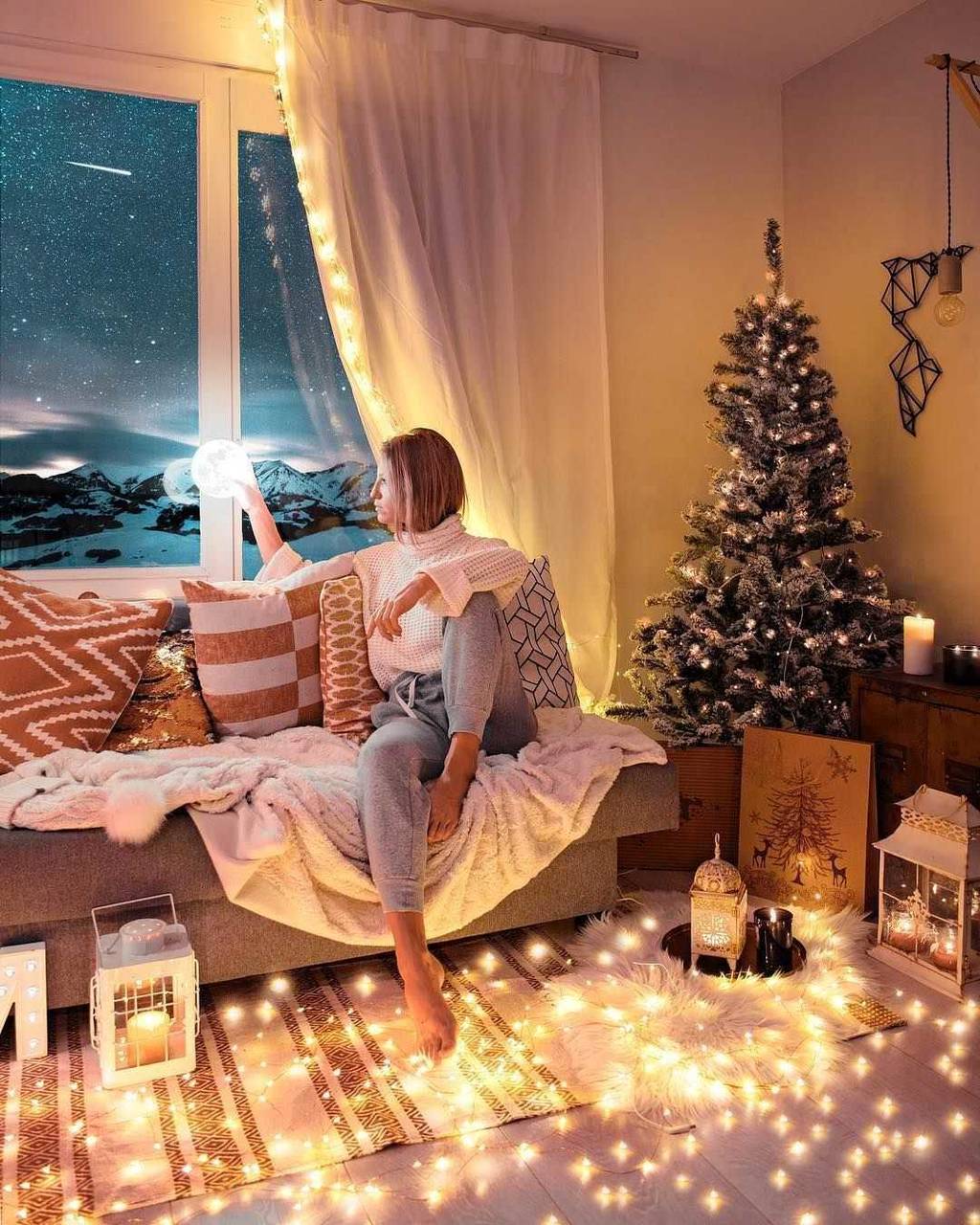 室内で楽しむイルミネーション、人気のガーランドライトの飾り方アイデア9選Houzzハウズ。