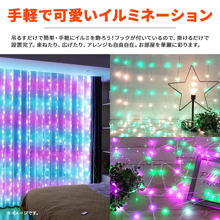 イルミネーション ライト カーテンライト LED 200球 3×2m マルチカラー USB式 室内用 リモコン タイマー 調光 led かわいいおしゃれ フェアリーライト ワイヤーライト 電飾 インテリア クリスマス ツリー パーティー ハロウィン 寝室電光ホーム。