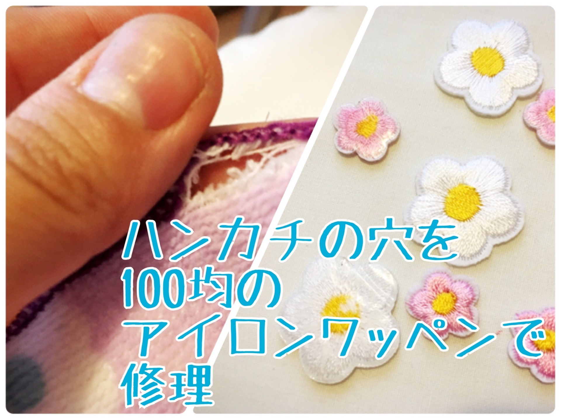 修理 ハンカチ縁の穴を百均のアイロンワッペンで塞ぐ セリア: すみれもの日記。
