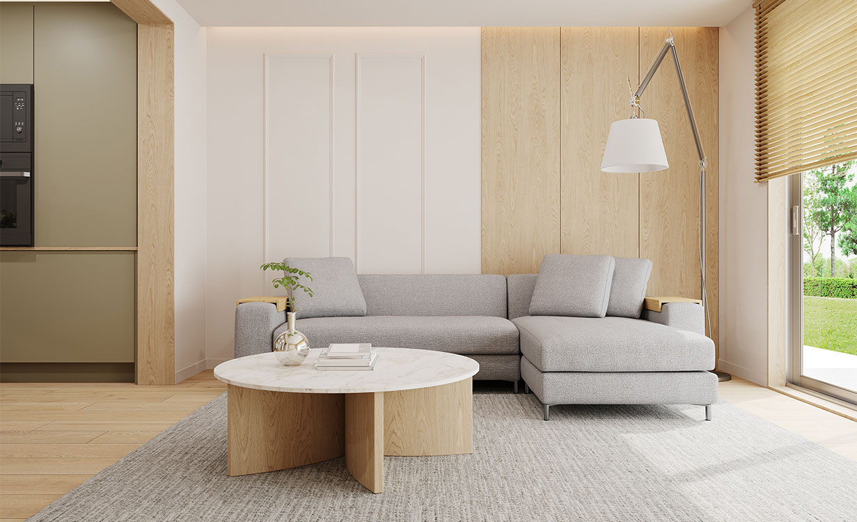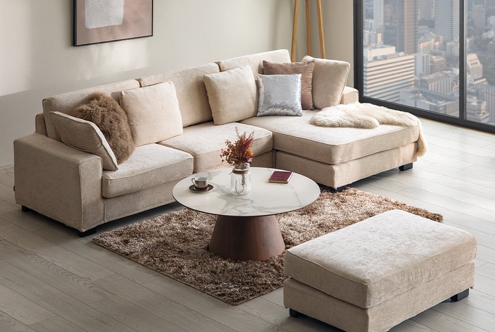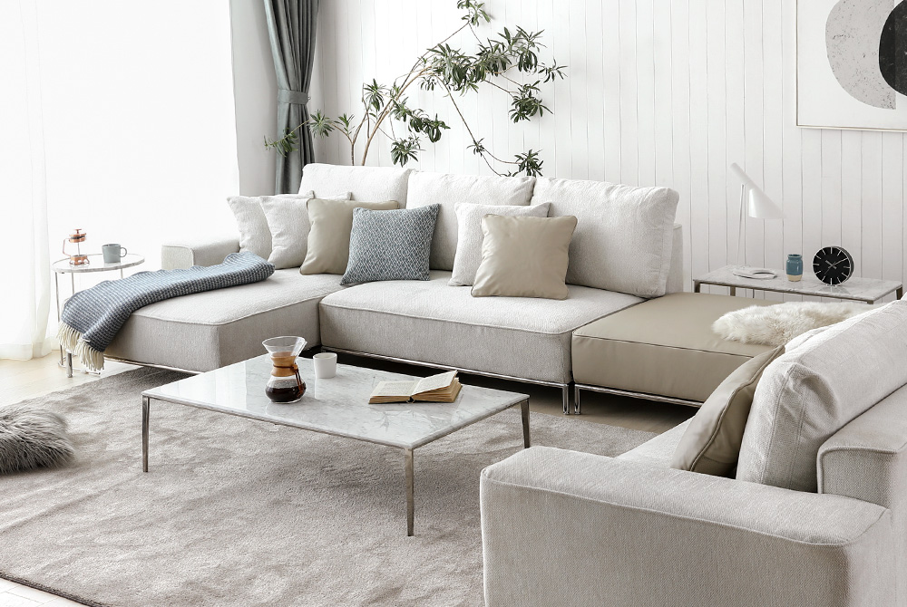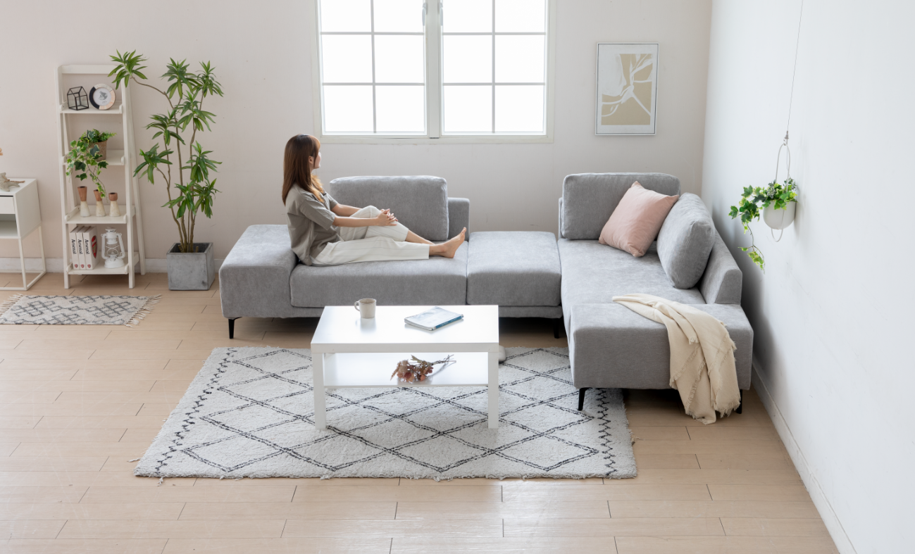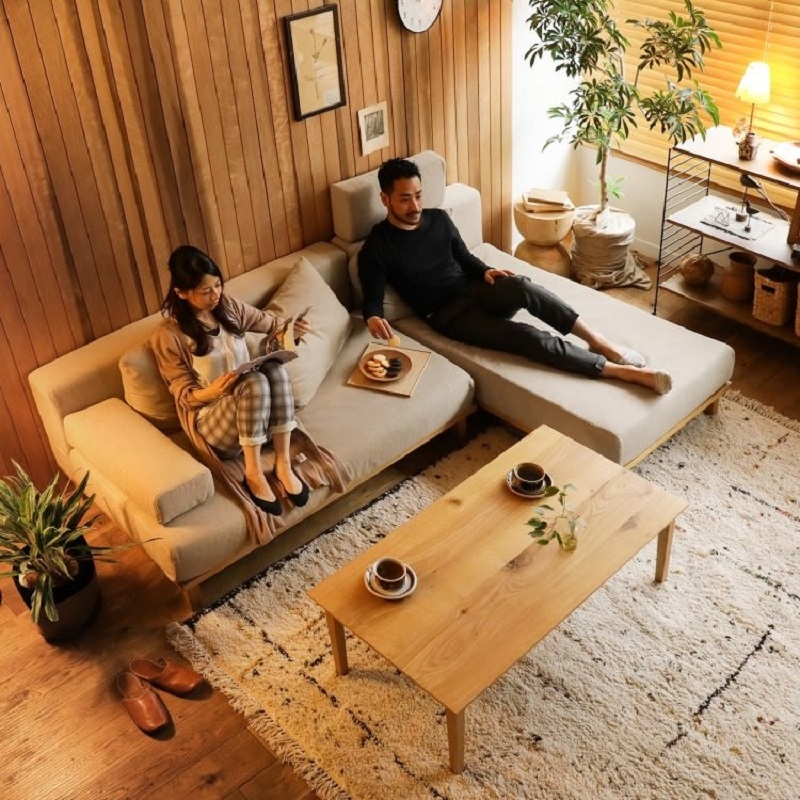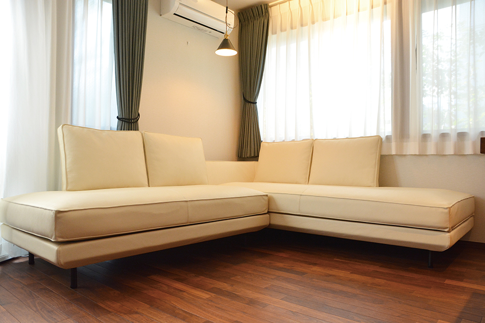 リビングのL型カウチソファでゆったり過ごす。置き方や選び方の正解は?高級家具リースレンタル・インテリアコーディネートのメイズ。