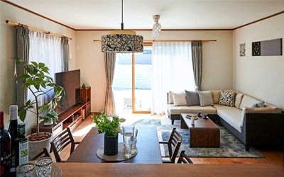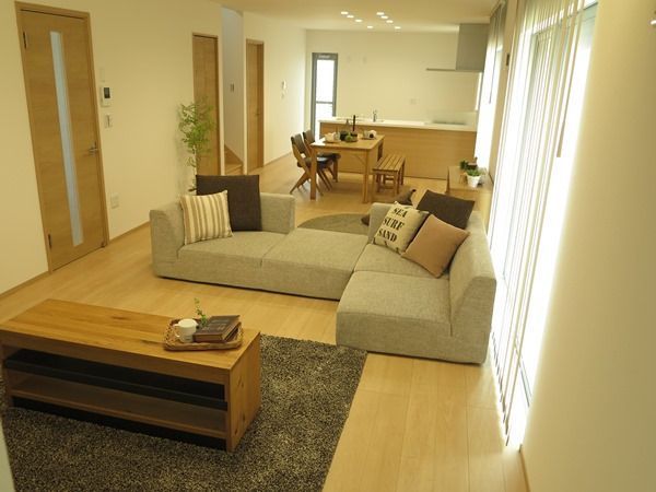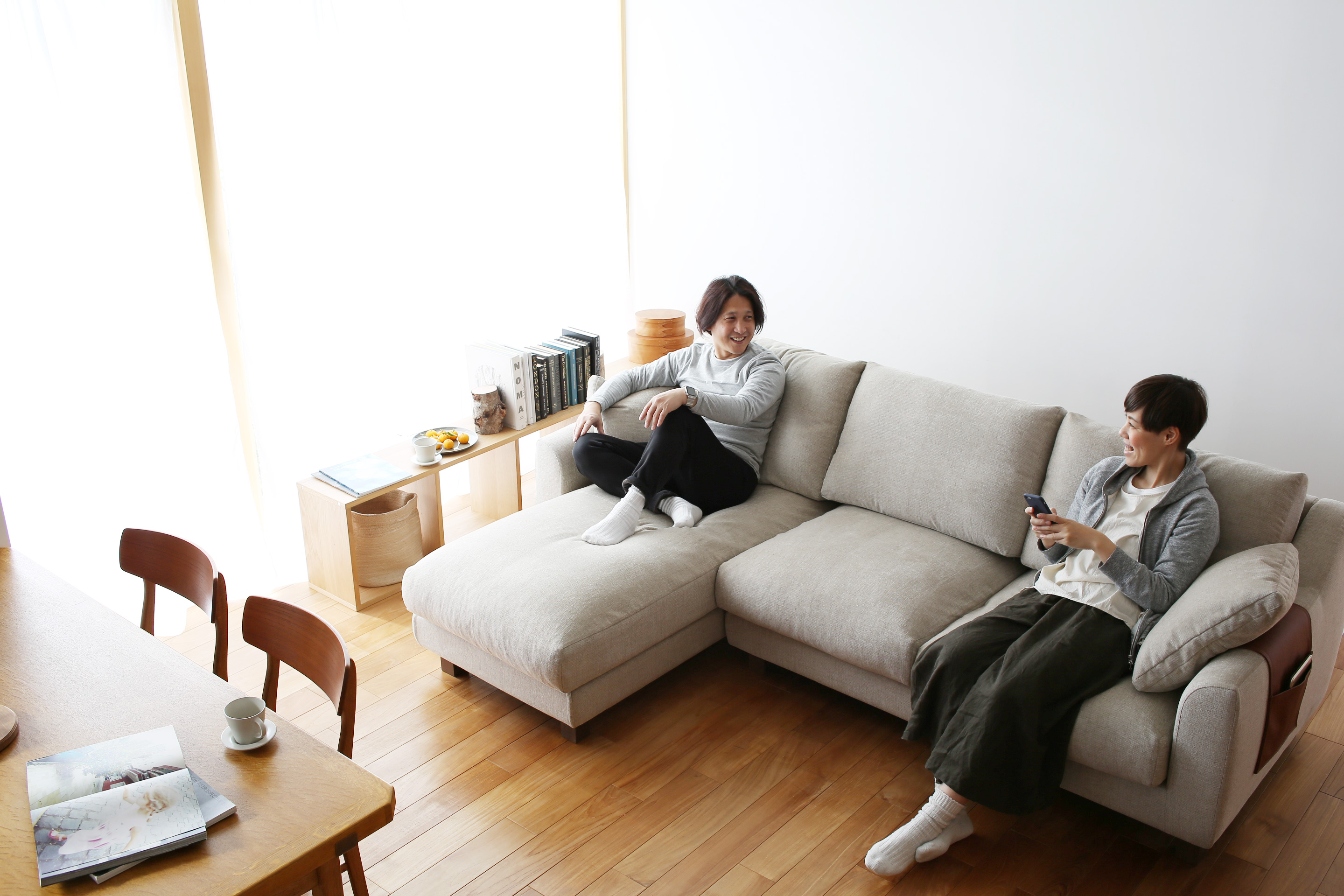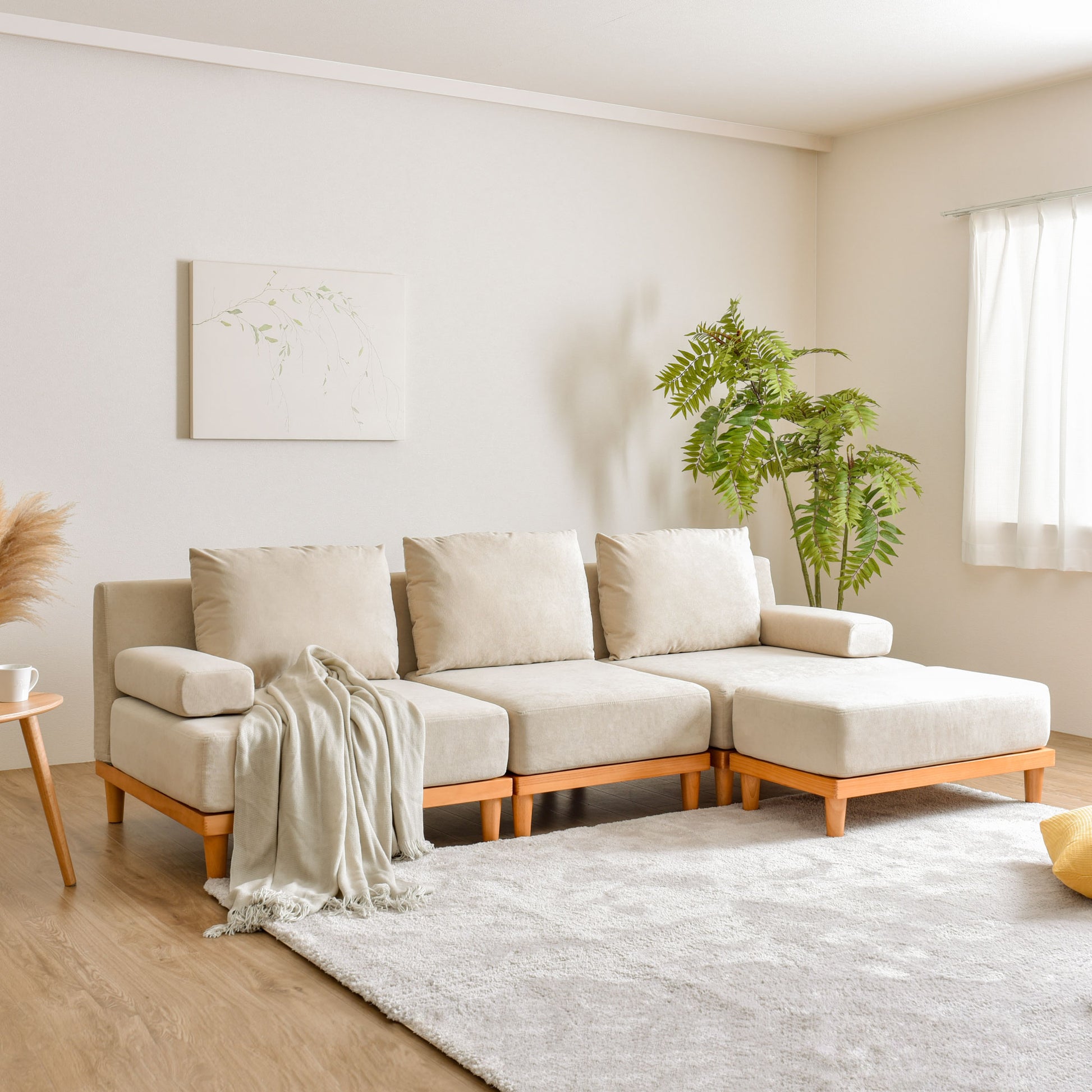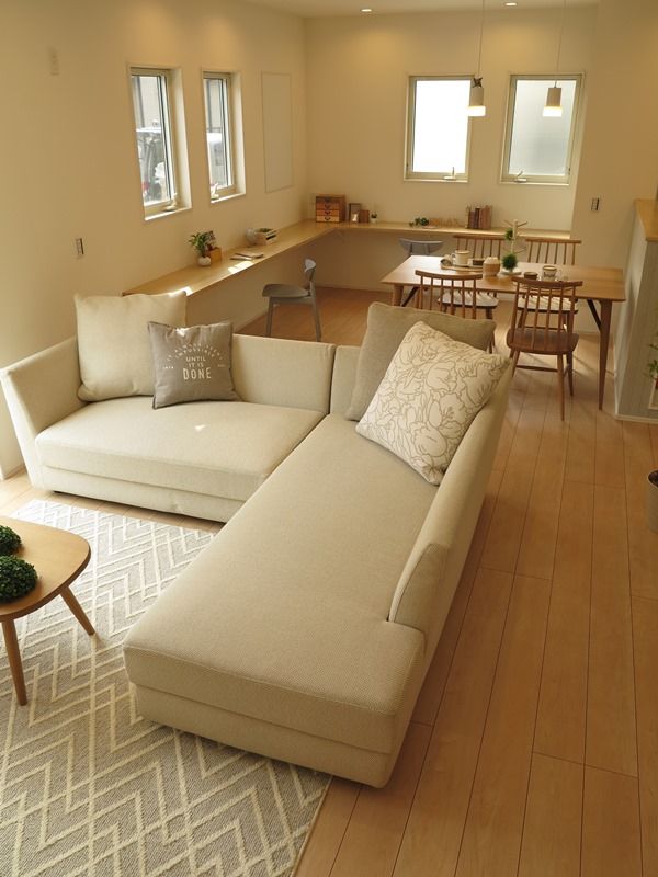 広さを活かしたL型のカウチソファのある暮らしを提案!ナチュラルコーディネート!』。