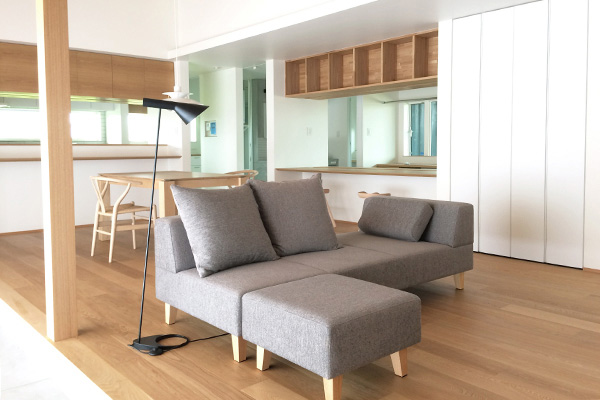間取りの特徴を活かす家具の配置術をご紹介!カウチソファを従来の組合せでない崩した形で提案しました家具なび~家具の使い方を提案するブログ~名古屋・インテリアショップBIGJOYが独自のアイデアで家具の配置術などを提案。