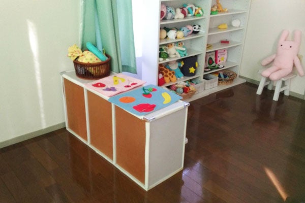 カラーボックスで仕切りを作ります布おもちゃ作家&保育士「ゆっこせんせい」の 『布育®のすすめ~ちゃんと遊べば ちゃんと育つ』。
