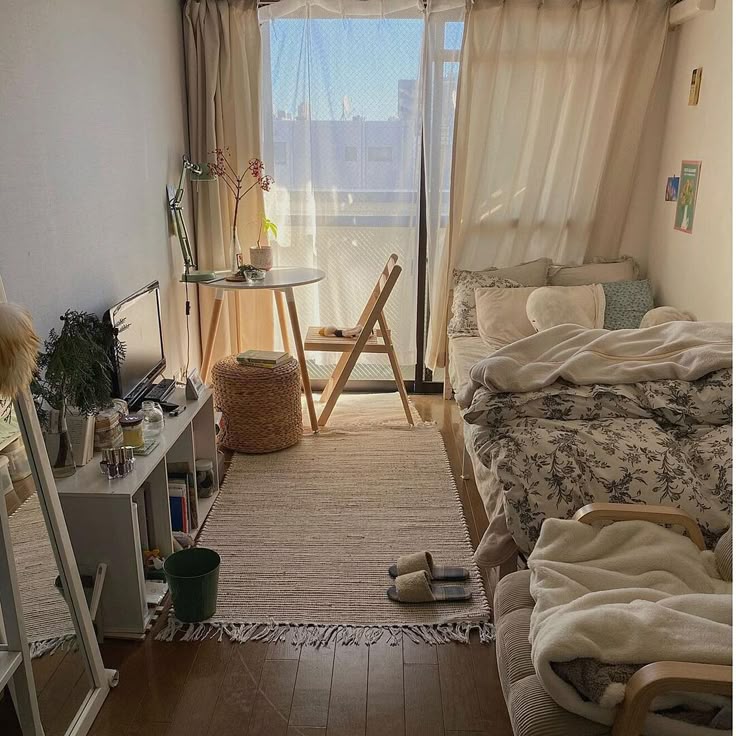1K6畳の長方形の部屋×ホワイトインテリア 3Dシミュレーション リクエストは間取りと部屋サイズをコメントしてね。 一人暮らしホワイトインテリア 1kインテリア一人暮らし女子部屋作り 6畳6畳インテリア。