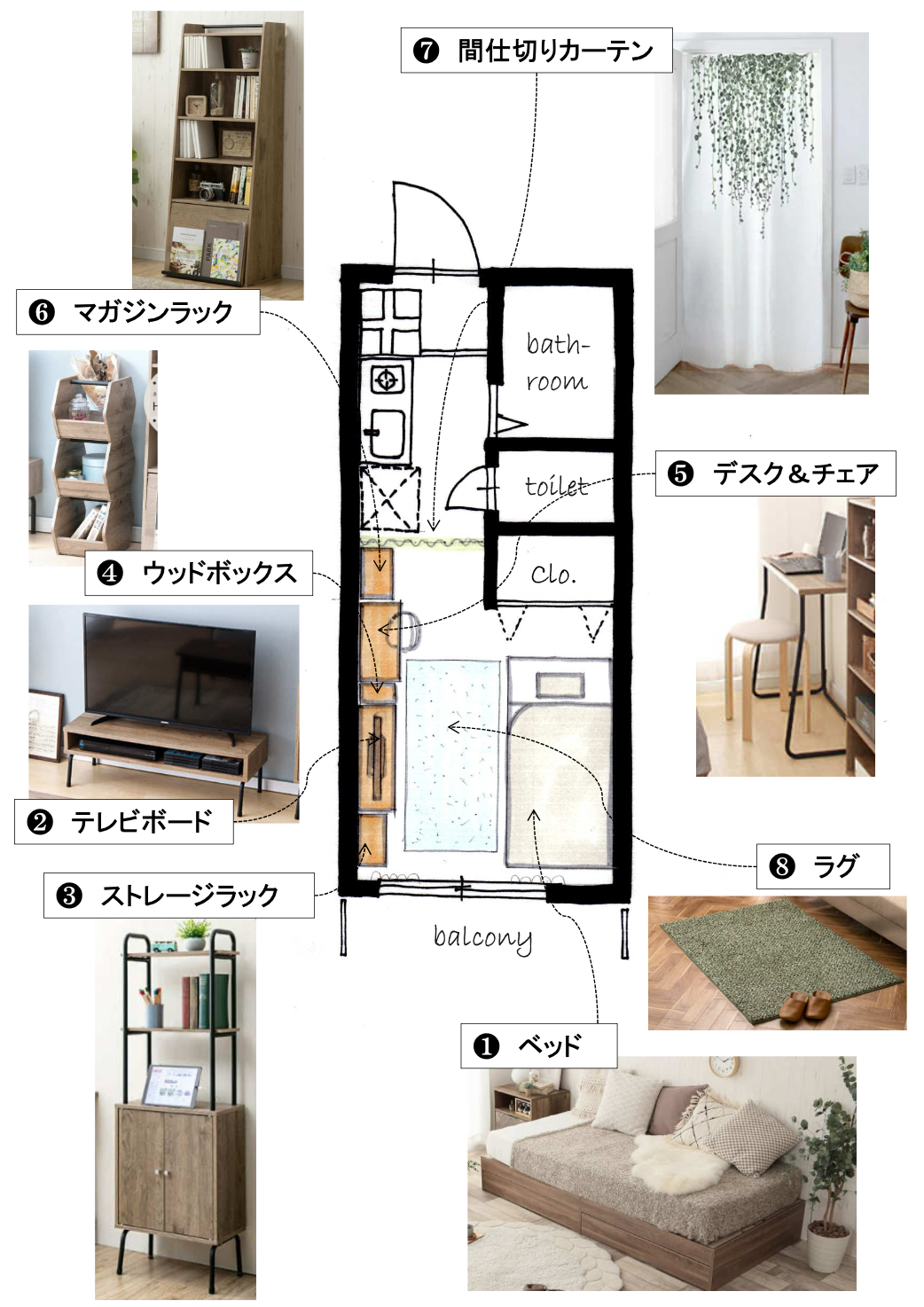 一人暮らしのワンルームのレイアウトのコツ!インテリアコーディネーターが広さ別に4パターンのレイアウト実例を解説。