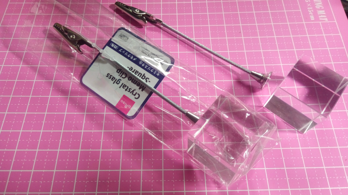 ダイソーのメモクリップから透明ガラスキューブをゲットするガンプラ エルドラド。