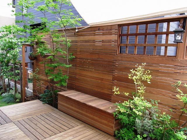 プライベート空間のための目隠しウッドフェンスのお庭 ガーデンおしゃれな外構・エクステリアと庭は受賞多数の外構工事店へ。