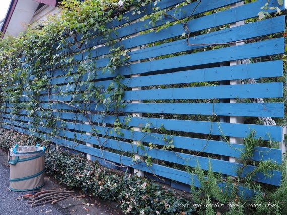 施工例「つる植物をラチスに絡ませた庭の目隠し」兵庫県加古川市。
