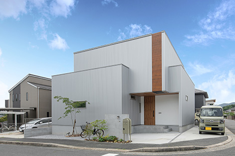 無機質な外観の中に、温かな暮らしハウスフリーダム。