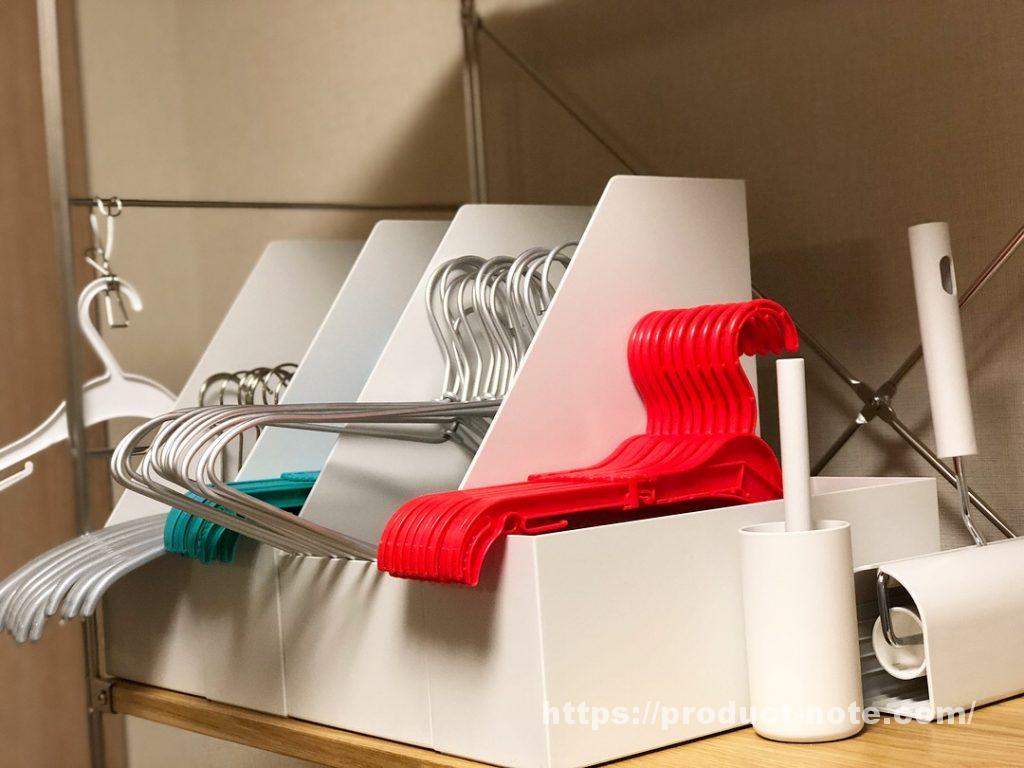 無印良品のポリプロピレンファイルボックスで絡まないハンガー収納 MAWA 肩幅36cm ・アルミ洗濯用・伸縮 ベビー&キッズ- プロダクトノート。