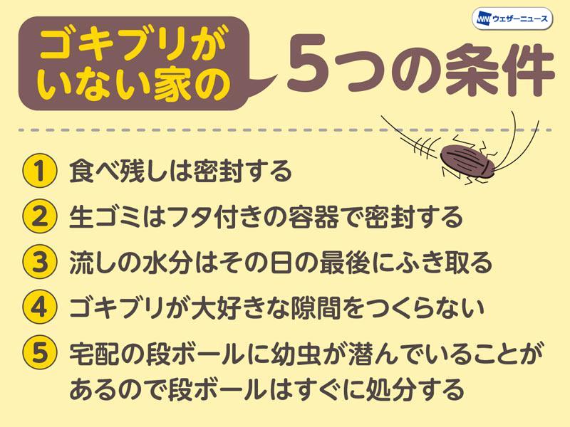 ゴキブリがいない家にするための5つの方法とは - ウェザーニュース。