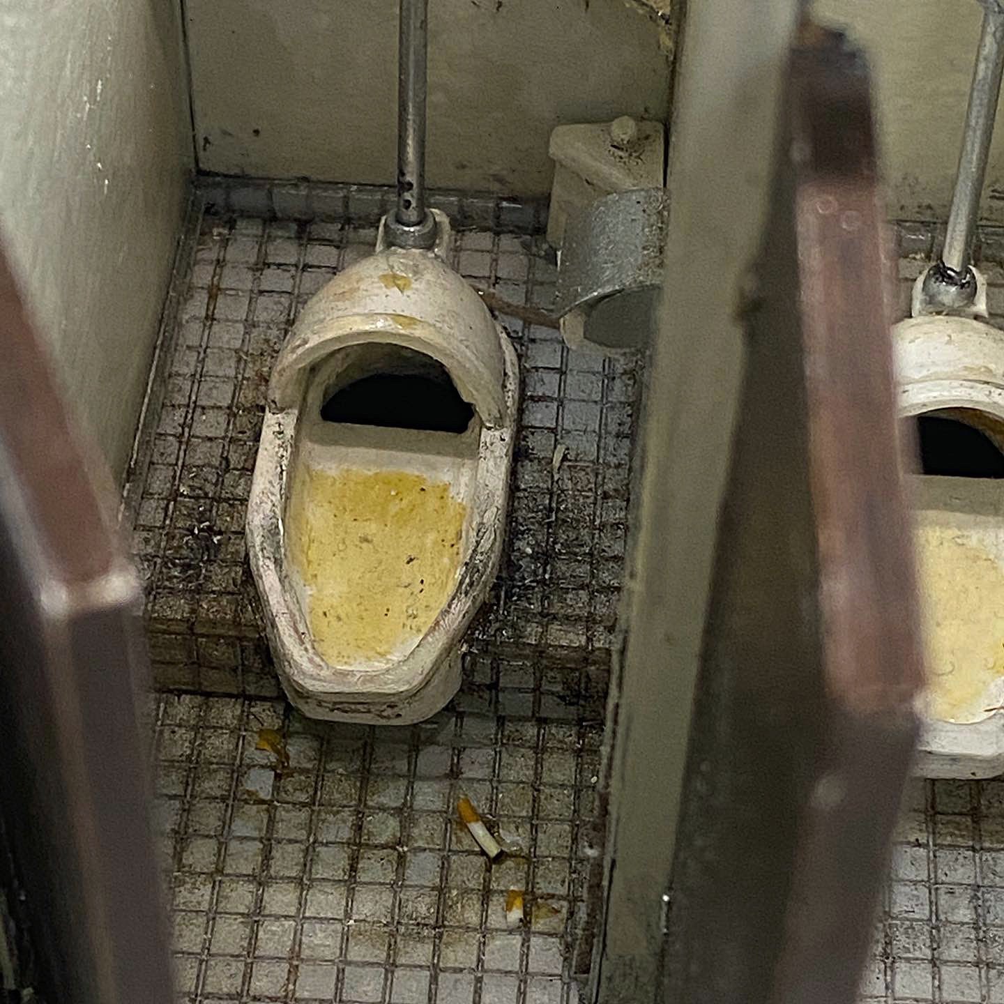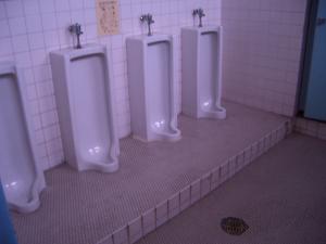 今ではめっきり見かけなくなった昭和の小便をする男子トイレ。