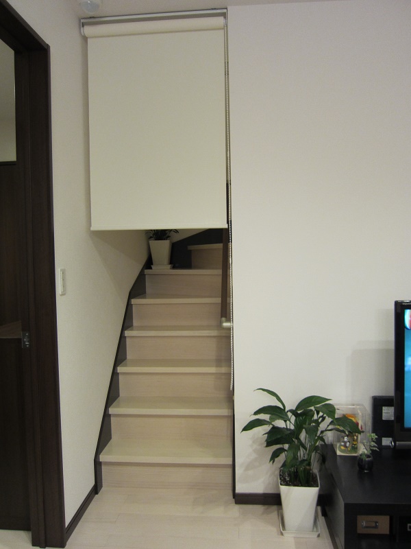 リビング階段にロールスクリーンを取付愛知県名古屋市のオーダーカーテン専門店カーテンハウスシルクみどり店。