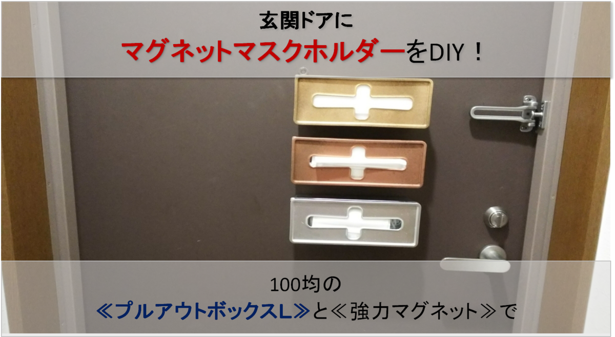 100均DIY 玄関ドアに“マグネット マスクホルダー“をDIY✨マスク収納は玄関にあると便利です✨プルアウトボックスセリア キャンドゥ-なつみかんのDIY ~素人でもできる賃貸diy~。