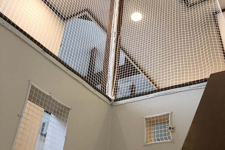 吹抜けネット設置工事宮嶋建設工業株式会社。