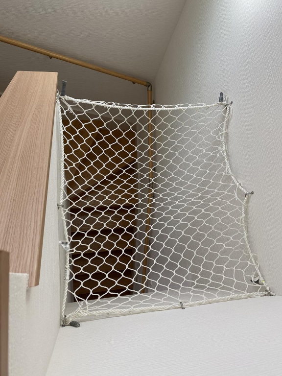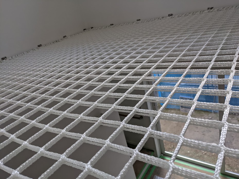 7月に現地調査へお伺いした新築現場で吹き抜けアスレチックネットと階段の転落防止ネットを取り付けてきました。 事前に建築会社様に金具を取り付けて頂き、現場では脚立や養生の準備をして頂いたおかげでスムーズに施工ができました。弊社ではお客様のご予算に合わせた。