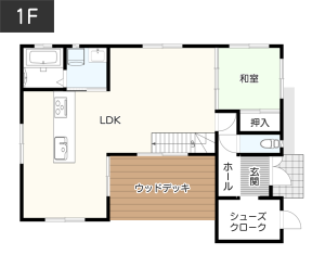 4LDK 33坪 ウッドデッキのある間取りプラン福井県おおい町・小浜市で注文住宅なら自社責任施工のフジホーム 富士良建設。