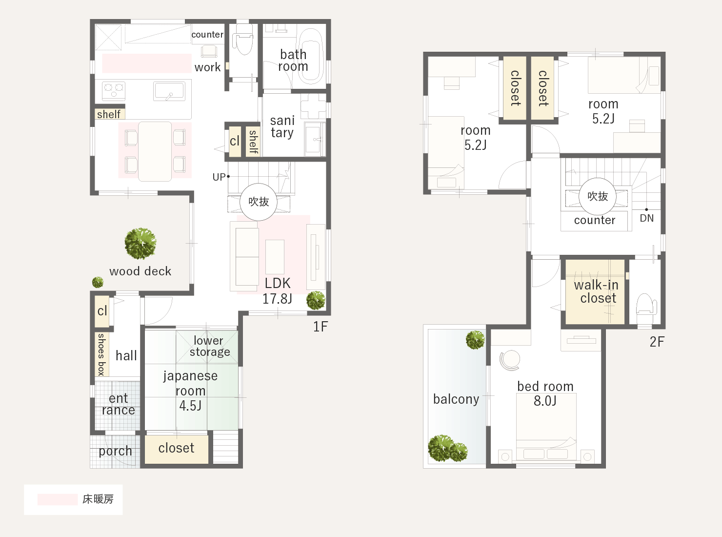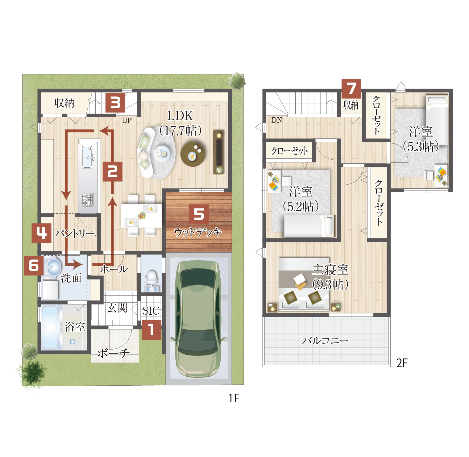 建物プラン7「ウッドデッキのある家」 - KAWASHOスマートタウン川祥建設株式会社。