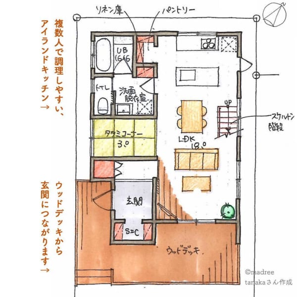 ウッドデッキを家事用と家族用に分けるの間取り一覧理想の間取り図と出会う「madree マドリー 」。