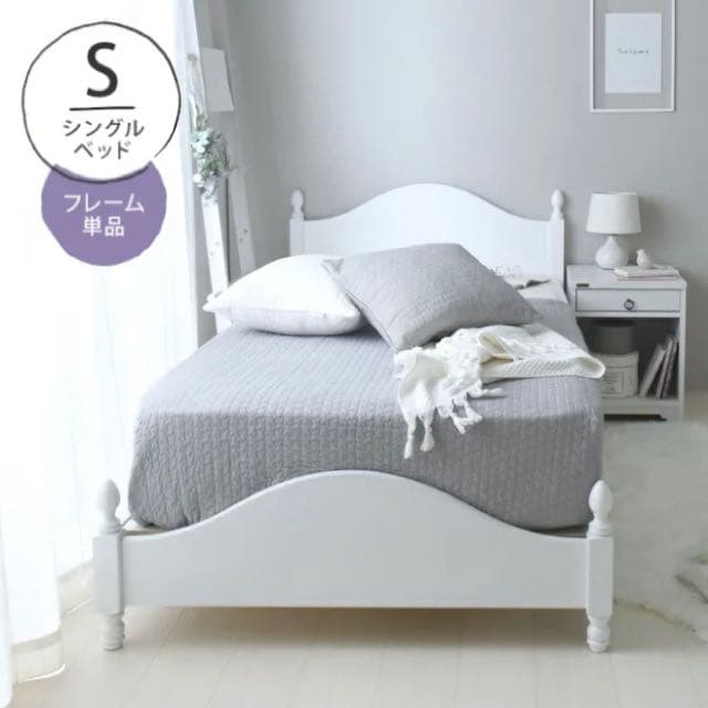 開梱設置 ロココ風可愛いシングルベッドフレーム おしゃれ 高級感 お姫様系アンティーク白。