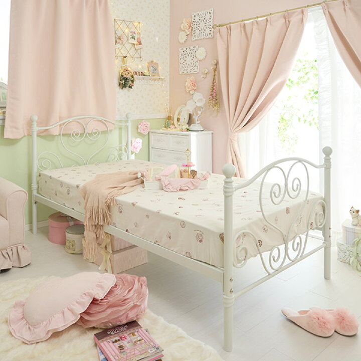 ベッド お姫様 パイプベッド シングル 姫系 お姫様ベッド プリンセスベッド。