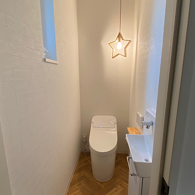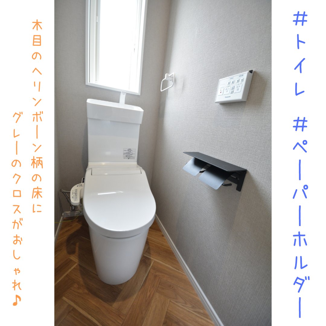 株式会社 アイアールホーム on X: "ヘリンボーン柄の床とグレーのクロスで 落ち着く色合いのトイレ。 お客様自身で購入されたペーパーホルダーが空間に溶け込んでいます。 電気をつけるとキラキラ輝くかわいいデザイン💡 アンティーク調のコードもおしゃれな照明も。