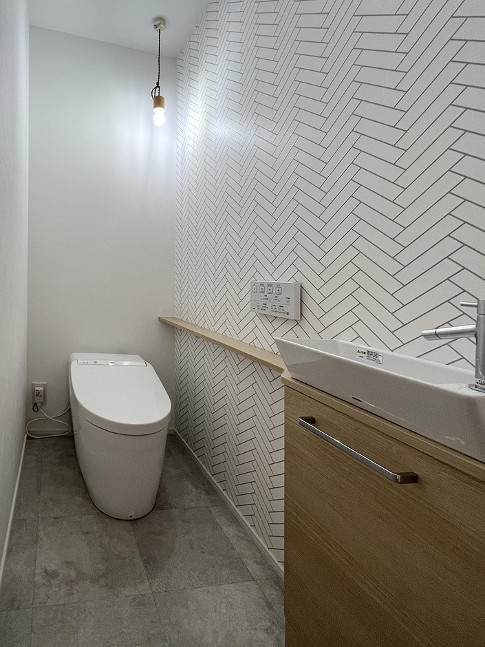ヘリンボーンでおしゃれ空間に!トイレリフォーム - 川崎市麻生区のリフォーム専門店リフォーム工房アントレ。