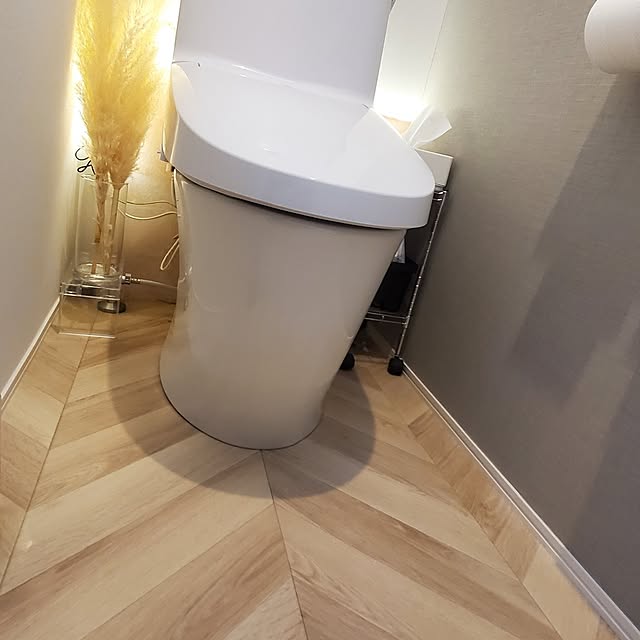 ヘリンボーンの床 タンクレストイレのおしゃれなアレンジ・飾り方のインテリア実例RoomClip ルームクリップ。