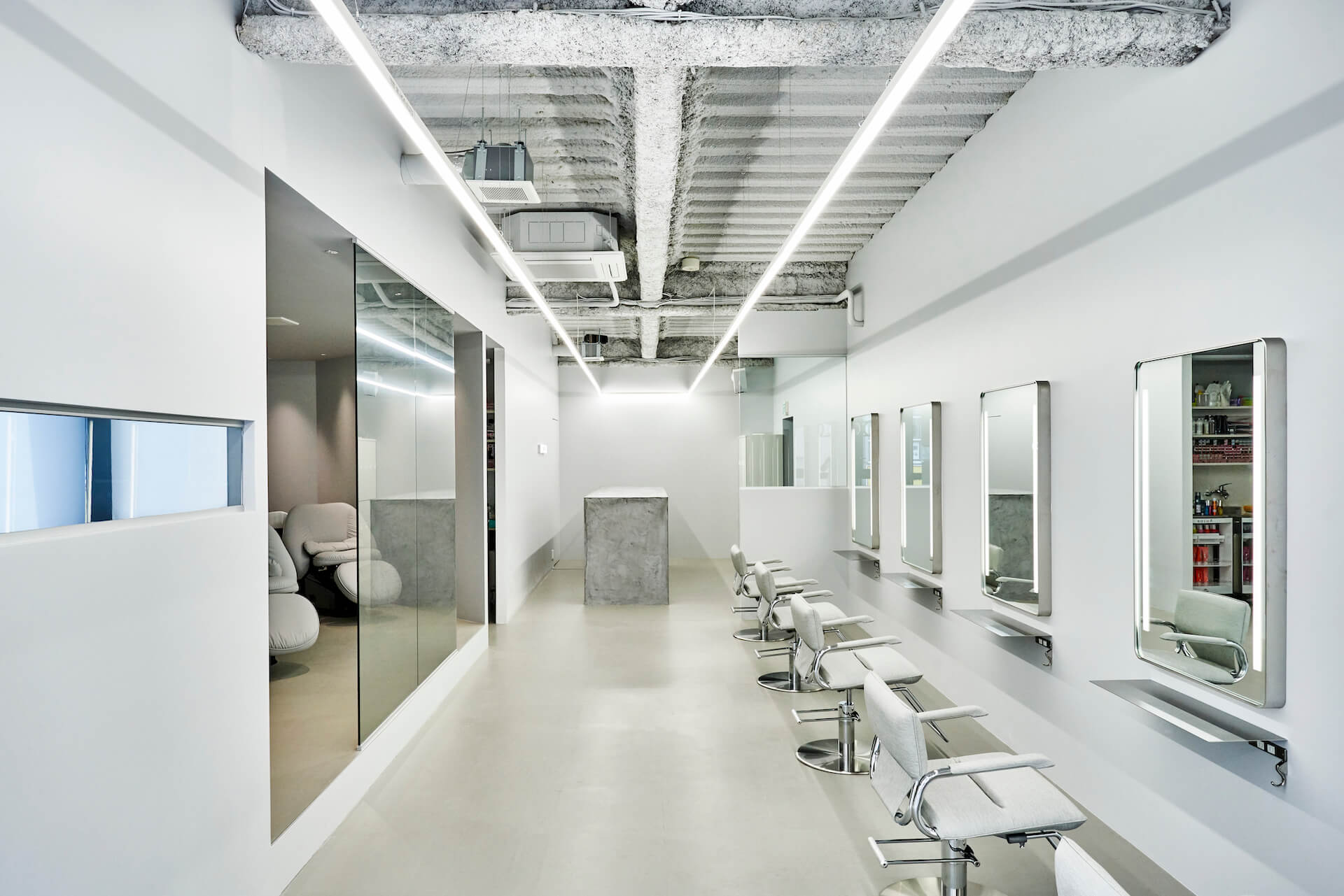 全席が半個室のシェアサロン。 埼玉県の美容院・美容室・理容室のデザイン施工事例店舗設計施工.com。
