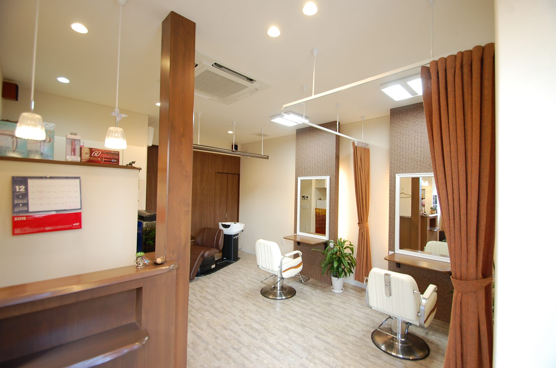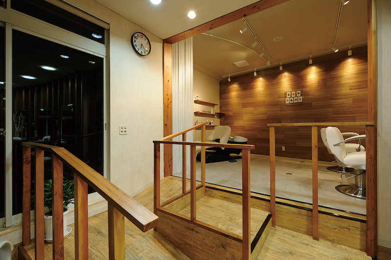 木を使った美容室内装:a-ju ヘアサロン・ナチュラルエレガント。