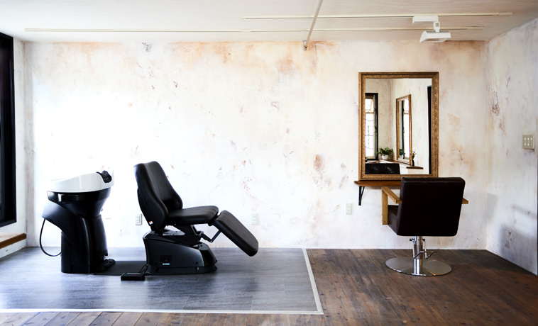 美容室 内装デザインと施工事例01仙台 サンデコ 特殊塗装 外壁リノベーション モルタル造形 おしゃれ店舗内装櫻一スタイル。