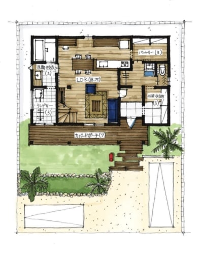 20坪台 ランドリールーム・サンルームのある平屋間取り図20選!ヒラヤスタイル。
