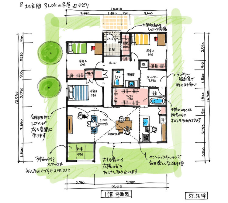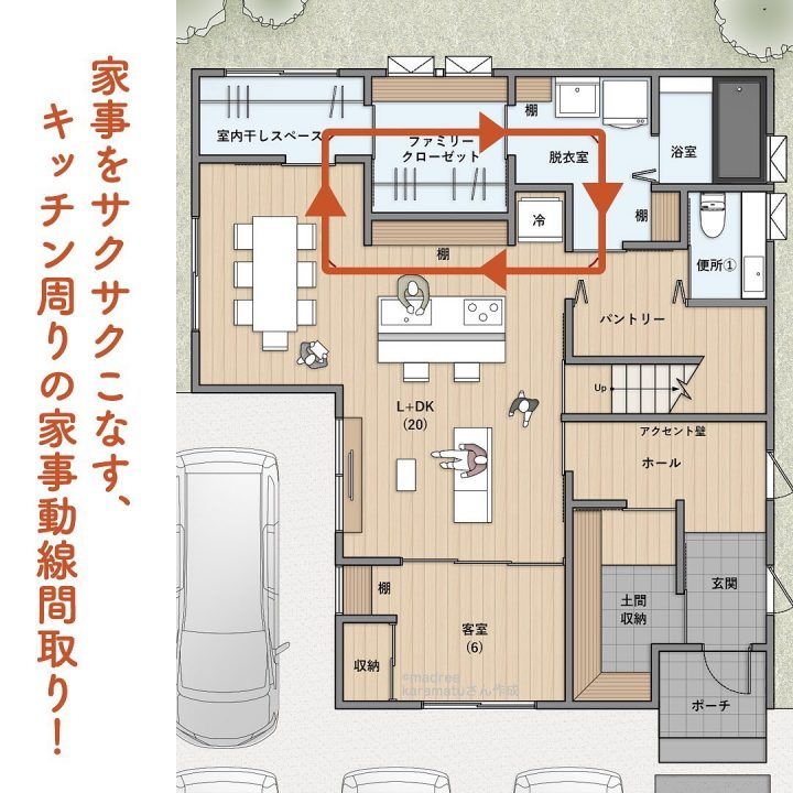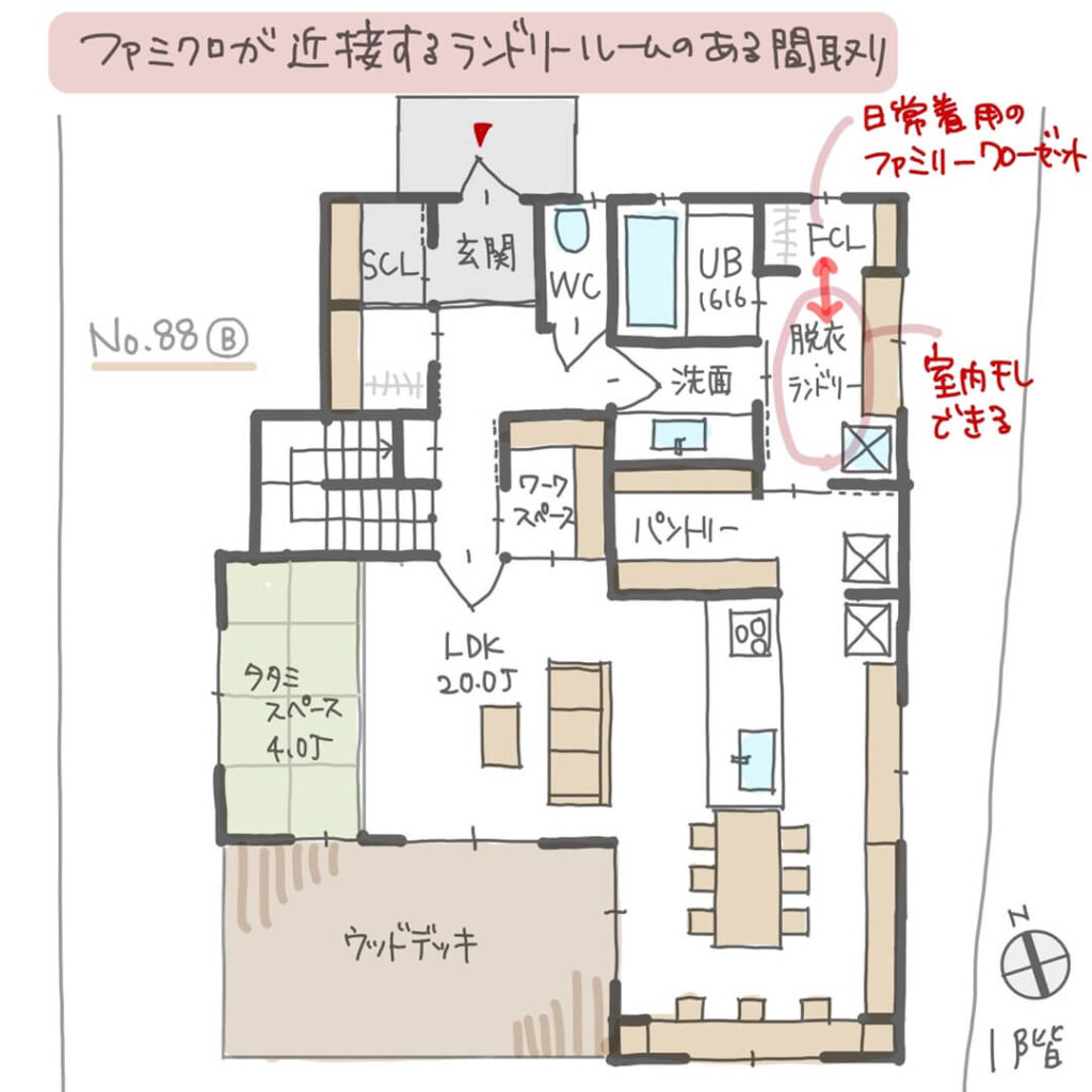 家事動線が良いランドリールームの間取り図と実例平屋・二階建てのアイデアをご紹介 - 鬼丸ハウス注文住宅・戸建て住宅・アパート建築。
