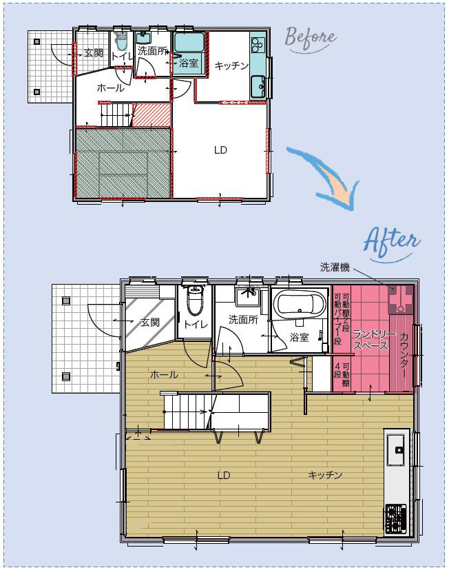ランドリーリフォームアイデア~パントリー兼用のランドリースペースリフォマガ。