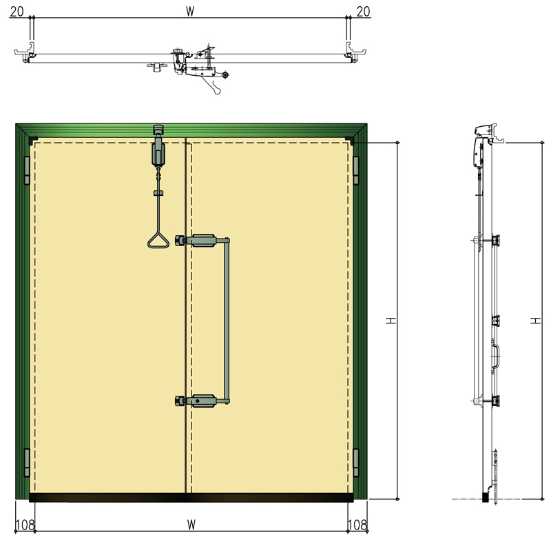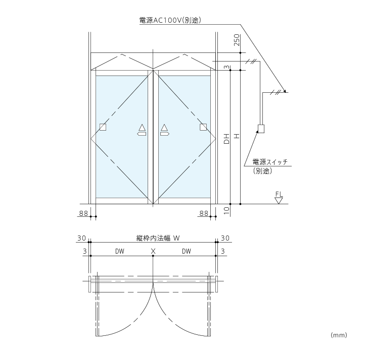 DK30 アルミ框ドア 両開き 中桟有り仕様 DK30-W-A。
