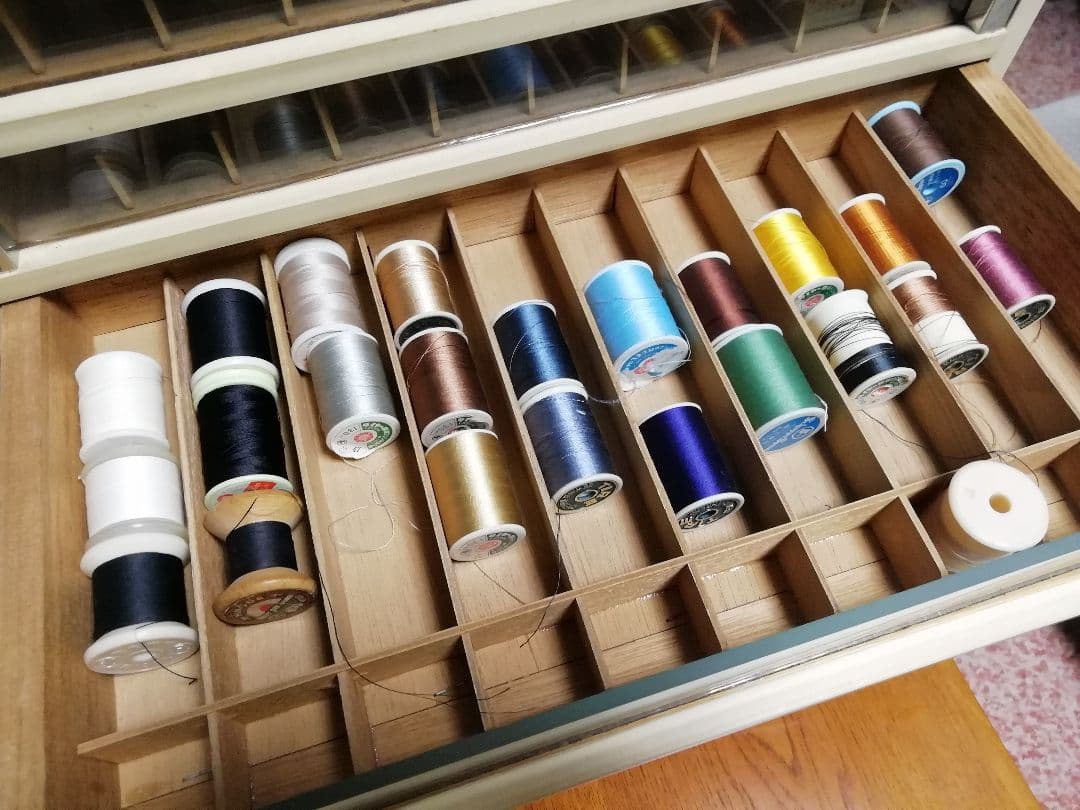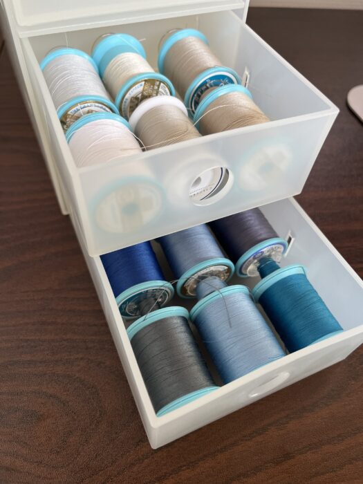 ミシン糸収納 無印のポリプロピレンケース引出式・薄型がピッタリ! - satashia handmade blog。