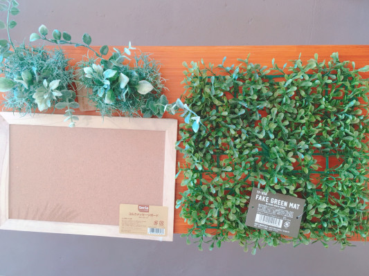 100均 DAISOのフェイクグリーンでグリーンウォールDIYよろづやRanはアウトドアがお好き。