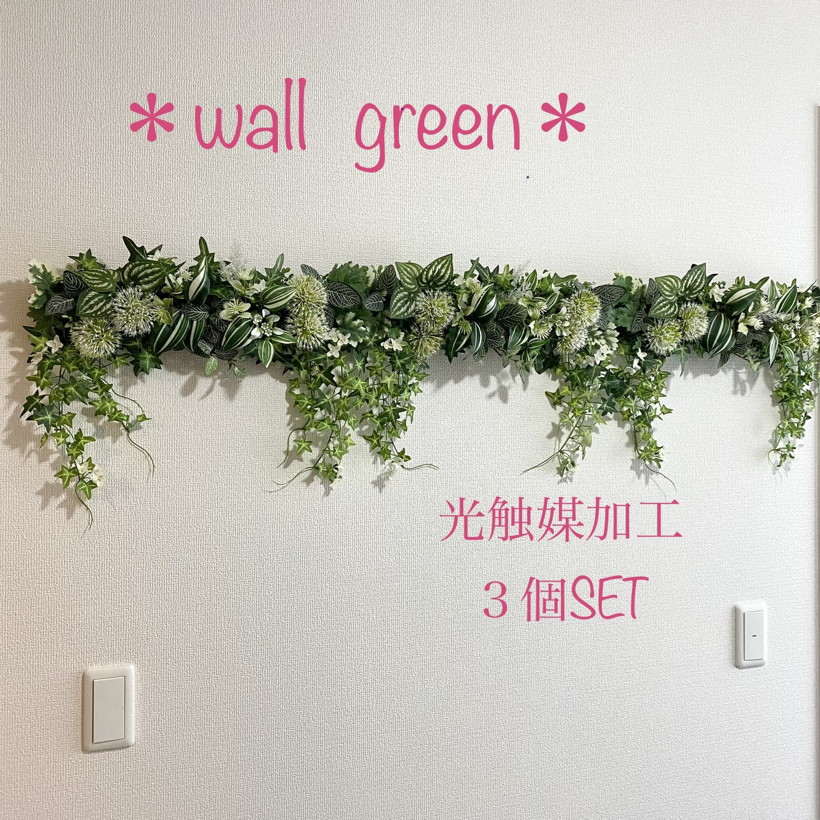 kamiro-green冬季休暇のお知らせ フェイクグリーン☆ウォールグリーン 受注生産 ☆光触媒加工 フェイクグリーン壁掛け3個セット☆フェイク グリーンインテリア ウォールグリーン☆ №35 ナチュラルインテリア 壁飾り - kamiro-greenminne 国内最大級のハンドメイド。
