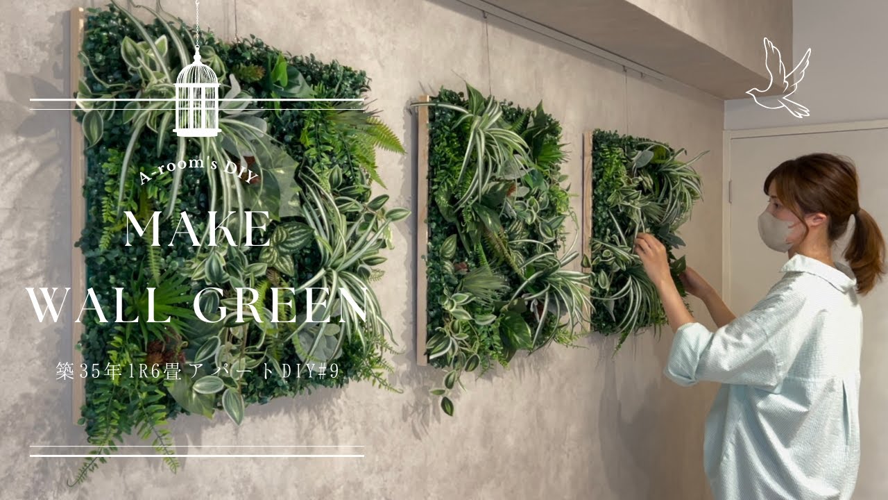 プチDIY 超簡単にウォールグリーンが作れた! 100均- YouTube。