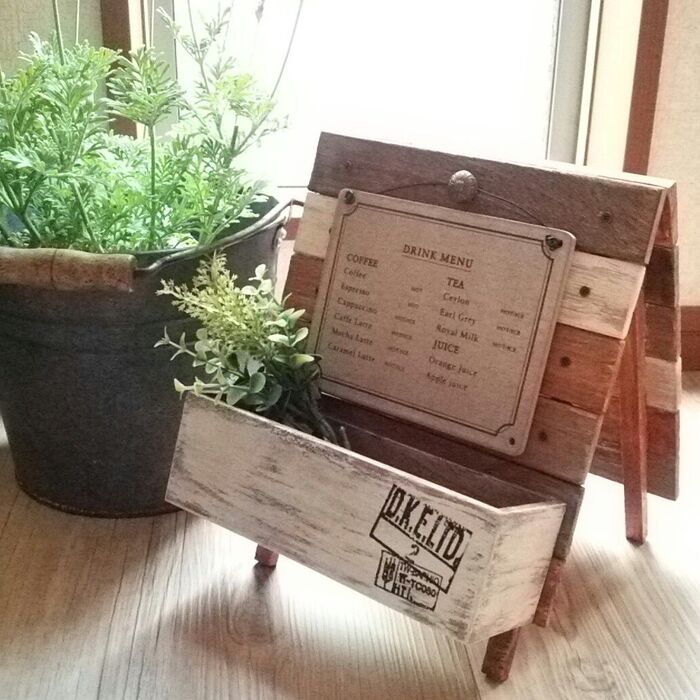 100均すのこDIY☆カフェ看板風ちょこっと収納ショップのアイデア暮らしニスタ。
