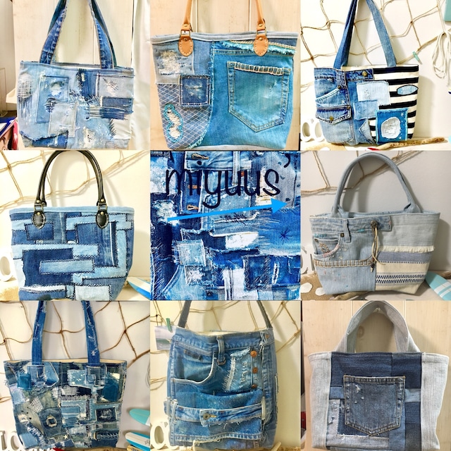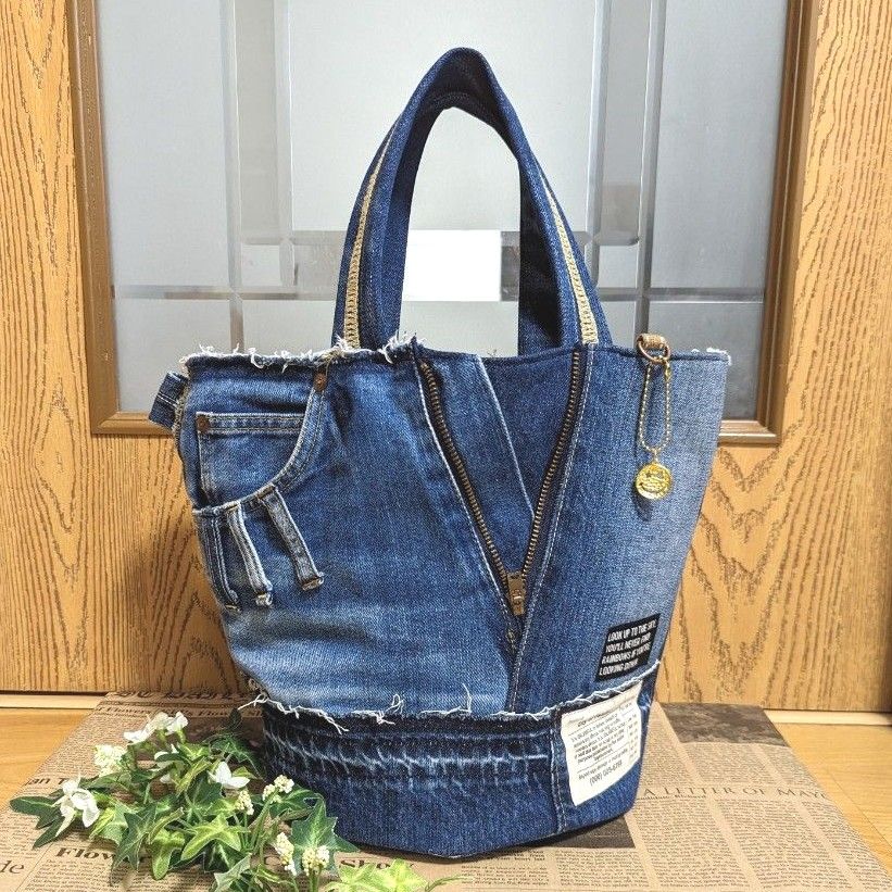 ハンドメイド デニムバッグ リメイクトートバッグ ジーンズリメイク ジーパンリ。