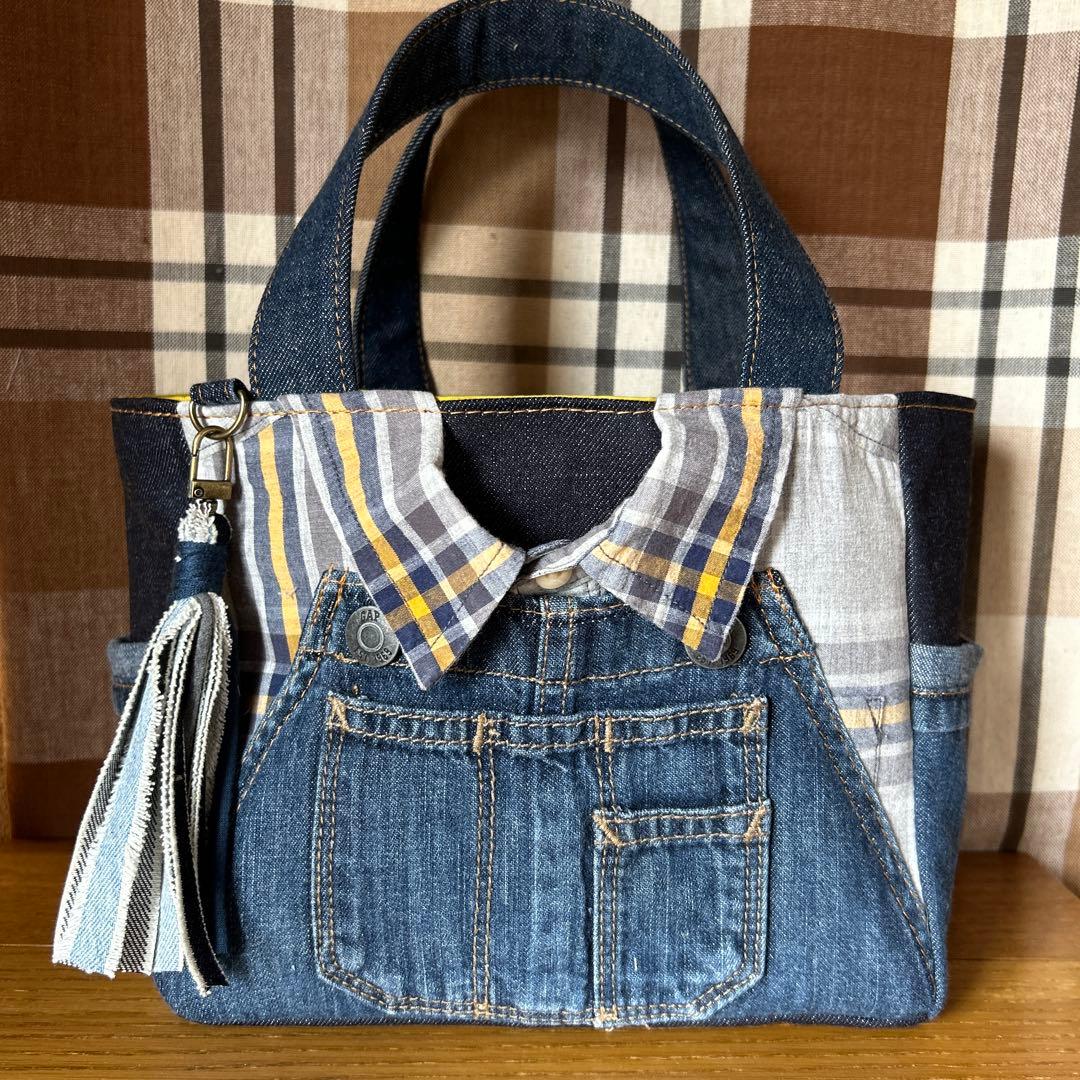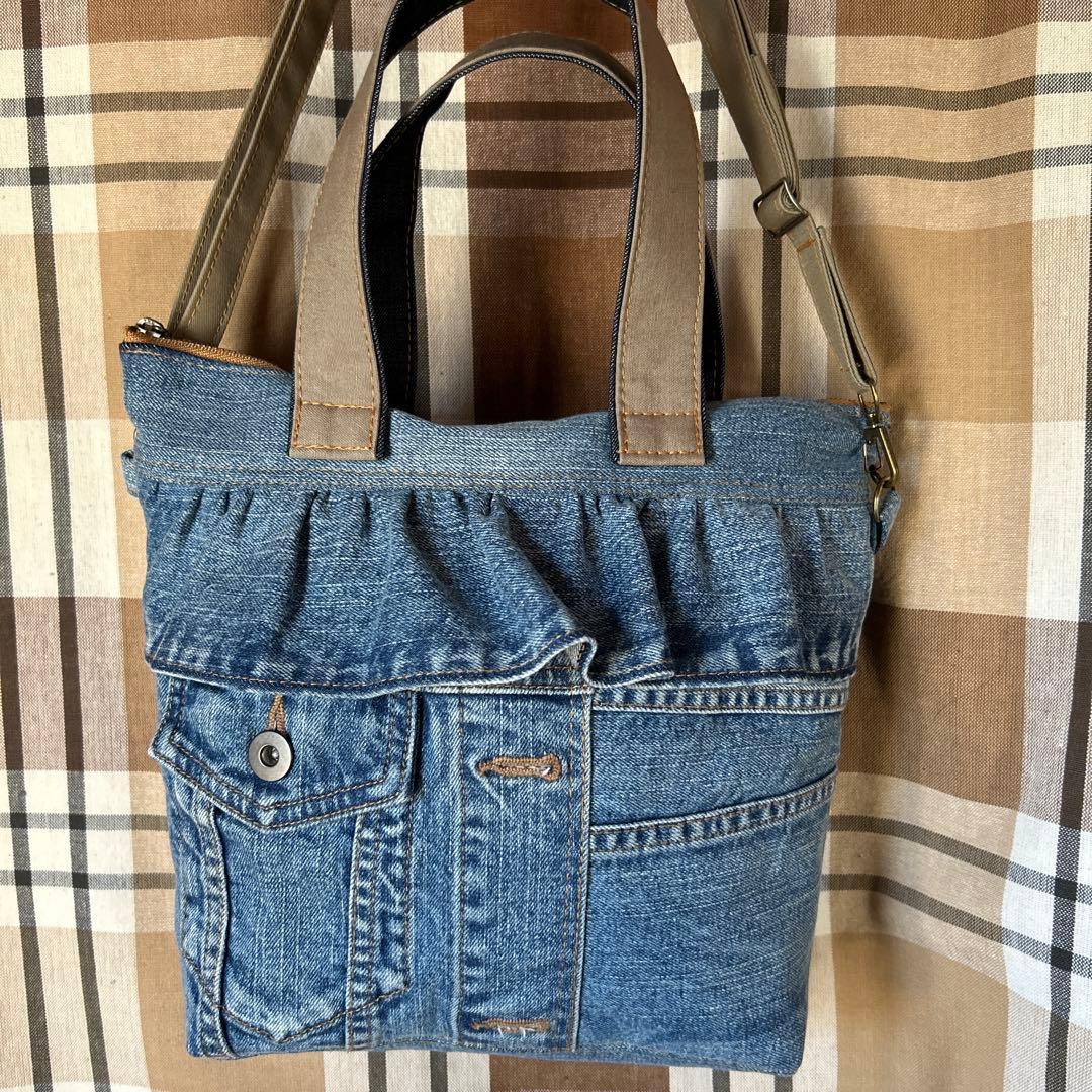 デニムリメイクトートバッグ ショルダー手提げ肩がけハンドメイド。