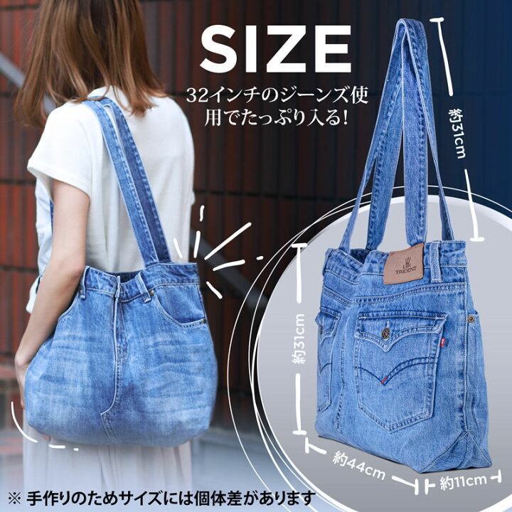 楽天市場公式 デニム トートバッグ UK Trident リメイク風 デニムトートバッグ マザーズバッグ エコバッグ トート バッグ 手作りかわいい おしゃれ 32インチジーンズ使用 レディース メンズ送料無料: UK Trident 公式 楽天市場店。