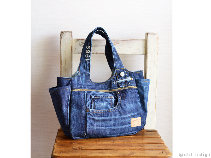 デニムリメイク トートバッグ ヴィンテージブルートートバッグの作り方 ジーンズ1本を再利用。
