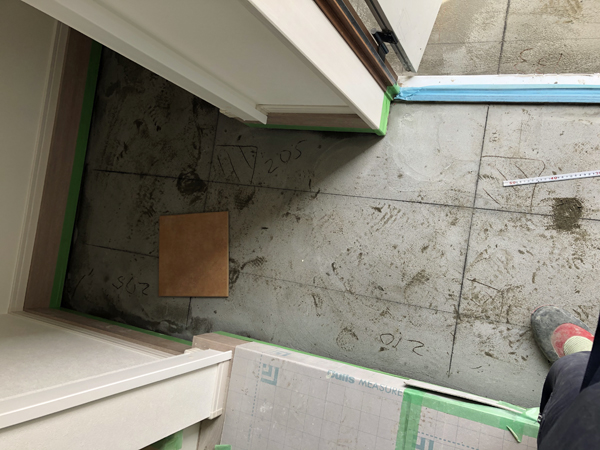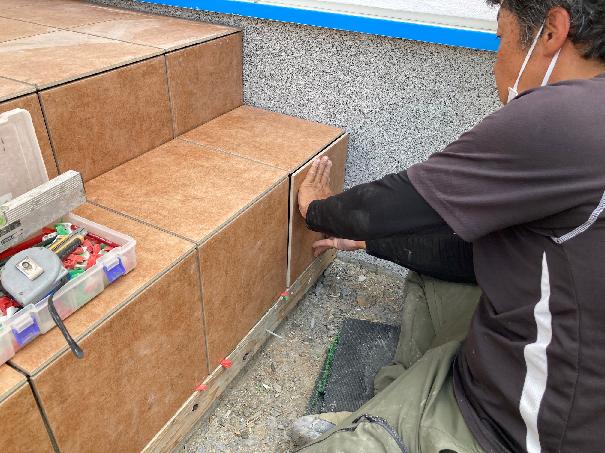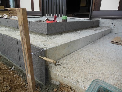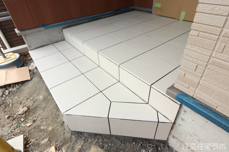 新築外構工事① 玄関ポーチタイル張り工事 下地調整・墨出し・タイル張り 注文住宅新築工事55-57日目- 宮城の家づくり情報局。