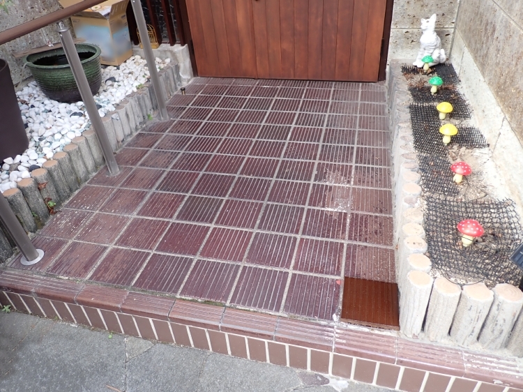 タイル張りの玄関ポーチお客様の施工事例タイルライフ アウトレットタイル販売 通販 サイト。