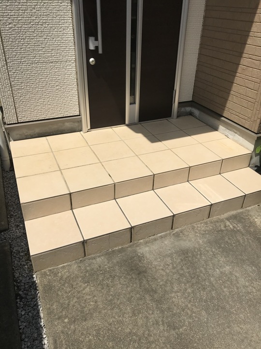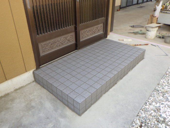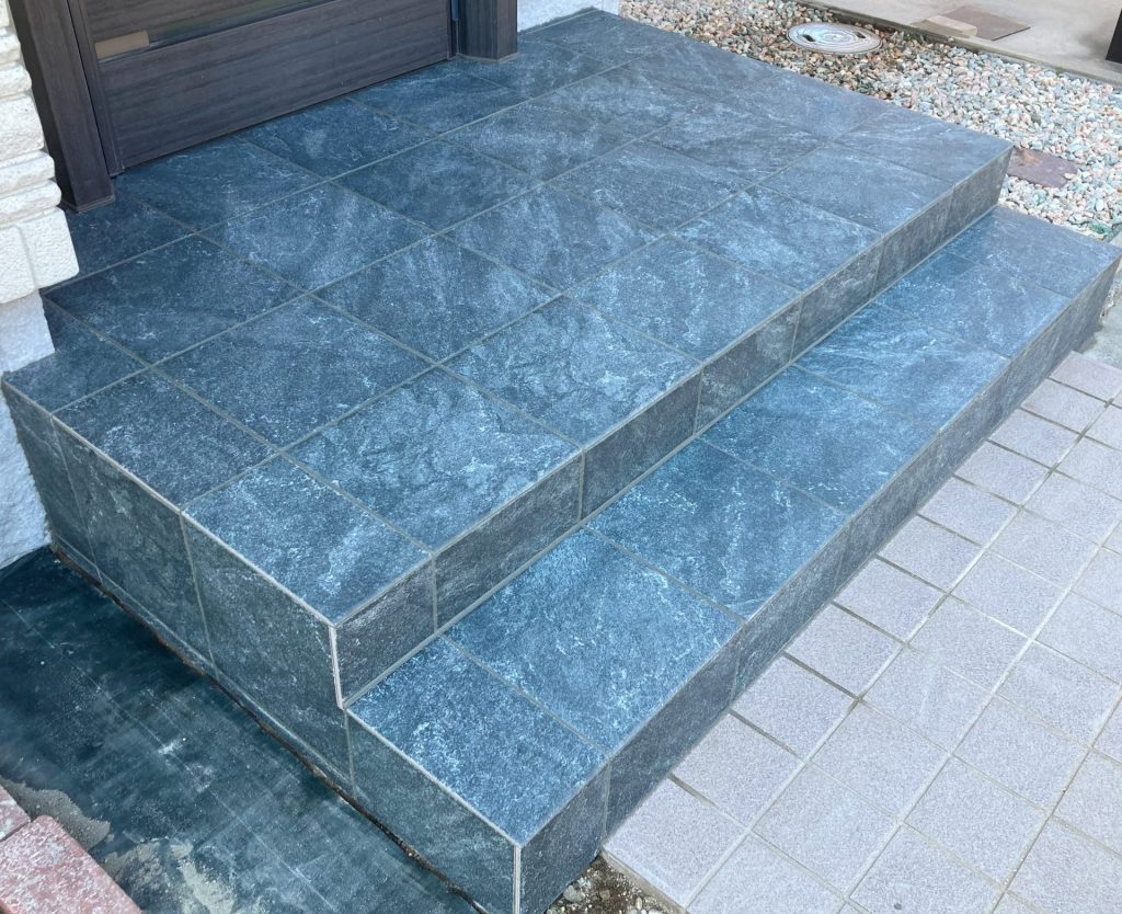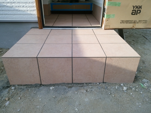 玄関ポーチ タイル貼り付け工事 ~完~愛媛で注文住宅を建てる工務店なら竹本建設松山市・伊予市。